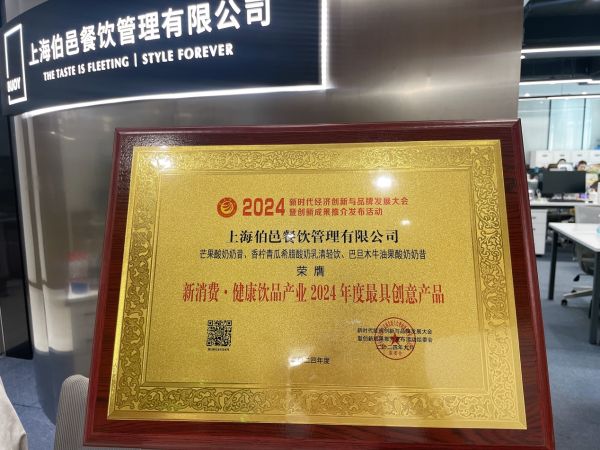 近日,2024新时代经济创新与品牌发展大会暨创新成果推介发布活动举行。茉酸奶旗下三款产品——芒果酸奶奶昔、香柠青瓜希腊酸奶奶乳清轻饮、巴旦木牛油果酸奶奶昔荣获新消费-健康饮品产业“2024年度最具创意产品”称号。