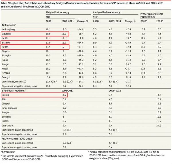 [2] David B. Hipgrave, MBBS, PhD, FRACP1; Suying Chang, MSc, PhD2; Xiaowei Li, PhD3; et al. Salt and Sodium Intake in China[J]. JAMA. 2016;315(7):703-705.