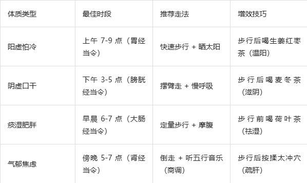 四、步行时间与体质适配表:喝对 "行走养生茶"