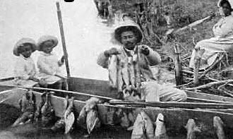 图1:美国南方一户黑人家庭在外打渔,大家可以看到船侧悬挂着的鲶鱼和水禽
