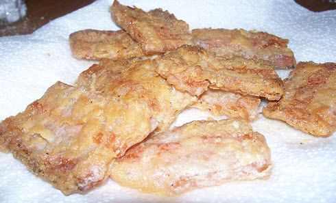 炸鱼(任何品种的鱼,尤其是鲶鱼,有时候也会吃鳕鱼,蓝鳃太阳鱼,涂上玉米粉高度油炸,南方白人也吃)
