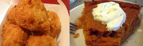 Hushpuppy 玉米面做成球状油炸,放上盐和洋葱丁调味,通常黑奴会用这种食物让自己的狗安静下来,所以会叫做“hush”“puppy”