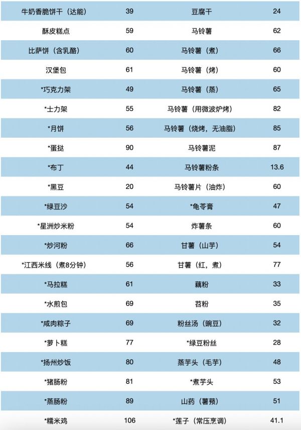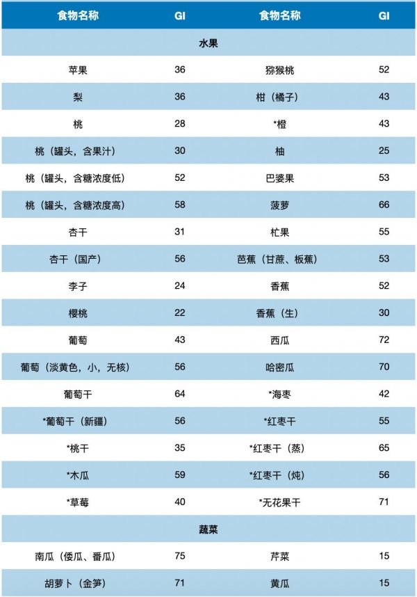 值得说明的是,表2-3和表2-4给出的食物GI 值,以及网络上其他来源的食物GI值都不是绝对准确的,只能作为大致参考。同一种食物在不同的检测机构测定GI值有可能不同,甚至相差较大互相矛盾。建议糖尿病患者参考食物GI值时,要结合血糖监测、看看吃哪些食物对自己的餐后血糖更友好。