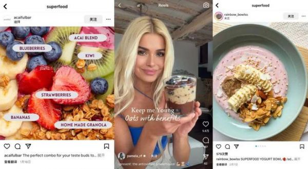 这一在社交平台引来上亿浏览的“美食”通常被当做简单的早午餐,主要原料就是酸奶、燕麦、水果与一些坚果,不同的搭配会诞生不同的口味,自然也含有不同的营养物质。自由创意搭配的特点赋予其强大的网络互动能力,分享自己的饮食搭配和创意菜谱成为这些消费者的日常爱好。进一步的,“帕梅拉同款”、“贾玲也在吃”等同类型词条引起越来越多人的关注与学习,沉淀多年的品牌们也随之出圈,“超级食物”正在创造新的增量市场。