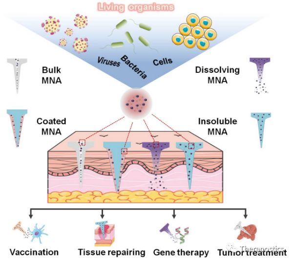 图2.负载活物的微针的未来研究方向