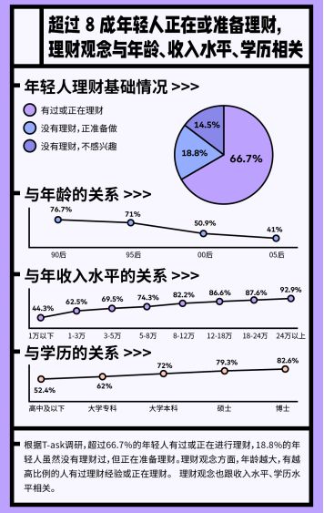 近年来,越来越多人加入理财大军,尝试“用钱生钱”。对许多人来说,理财即便不能带来财富增长,也好过空等通胀造成的财富贬值。随着经济发展、理财思维与消费行为的转变,重视理财的年轻人也越来越多。
