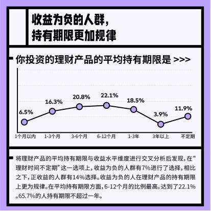 T-ask针对收益为负的人群展开分析,发现他们的理财持有期限更规律。有7%的收益为负的人群选择“理财时间不定期”,正收益的人群则有14%。调查也发现,收益为负的人群更经常关注理财收益。24.4%收益为负的人群的人每天关注自己的理财收益,作为对比,收益为正的人群这个数字是17.3%。