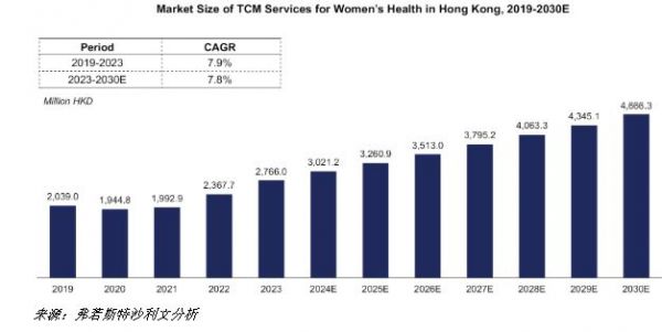 招股书显示,香港的中医药服务市场从2019年的325亿港元增长到2023年的369亿港元, 尽管2019年至2023年间由于COVID-19大流行的影响而出现波动, 反映了3.2%的复合年增长率。到2030年,市场规模预计将达到573亿港元,从2023年到2030年的复合年增长率为6.5%。预计市场将从2023年到2030年进一步扩展。根据相关领域的可用数据——包括上述三个市场——中医药女性健康与美容产业显示出显著的市场潜力,因为这些领域累计代表了一个庞大且不断增长的行业。