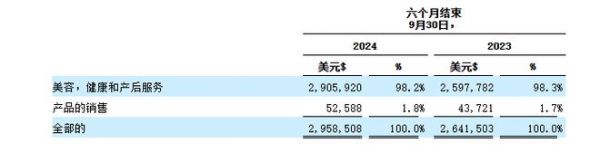 分业务来看,美容、健康和产后服务是公司的支柱业务,期内营收分别为259.78万元及290.59万元,占总营收比例分别为98.3%及98.2%;产品销售的收入分别为4.37万元及5.26万元,占总营收比例1.7%及1.8%。