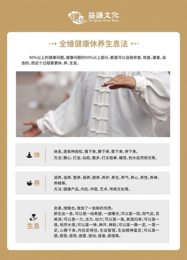 休养生息法是益谦文化开发的一套根源性的身心修复系统。自2011年成立,益谦文化深耕身心灵健康领域十余年,始终秉持“支持更多的生命健康、成长、成功、幸福”的使命,通过其独创的生命内在动力成长体系及个性化服务,帮助数千家庭及个人走出困境、重获生命能量。一名曾受重度抑郁困扰的客户反馈:“在这里,我不仅找回了睡眠和食欲,更重新感受到了生命的意义。”