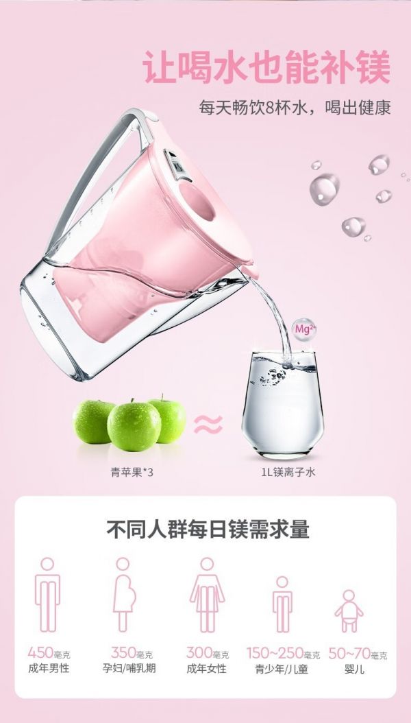 水被誉为“生命之源”,然而传统的自来水,以及净化过度的纯净水并不能满足人体生命健康需求。世界卫生组织《饮用水水质准则》指出,人体会从饮用水中摄取一定量的矿物质和微量元素,其中钙、镁的摄入量约为成人总摄入量的5%-20%,特别是镁在水中的吸收率可高达59%,是人体营养很好的来源。日常饮用带矿物质镁的健康饮水,是生命活力不可替代的基础保障。
