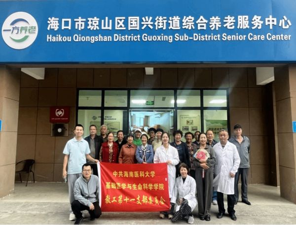 2024年12月13日下午,基础医学与生命科学学院药理学教研室的曾祥周、李佩琼、姚思、黄伟、赵伟楠等老师前往琼山区国兴街道综合养老服务中心,开展了一场主题为“健康晚年,安全用药”的公益科普活动。本次活动旨在提高老年人对药物使用的认识,减少药物滥用和误用的风险,帮助他们更好地管理自身健康状况。