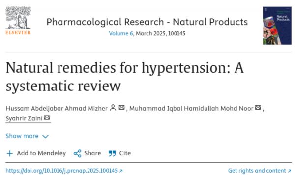 最近,马来西亚国际伊斯兰大学的科研团队在《药理学研究——天然产物》期刊上发表了一篇系统综述,评估了多种自然疗法在降压方面的有效性与安全性。