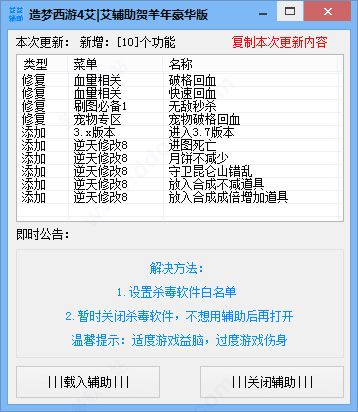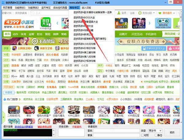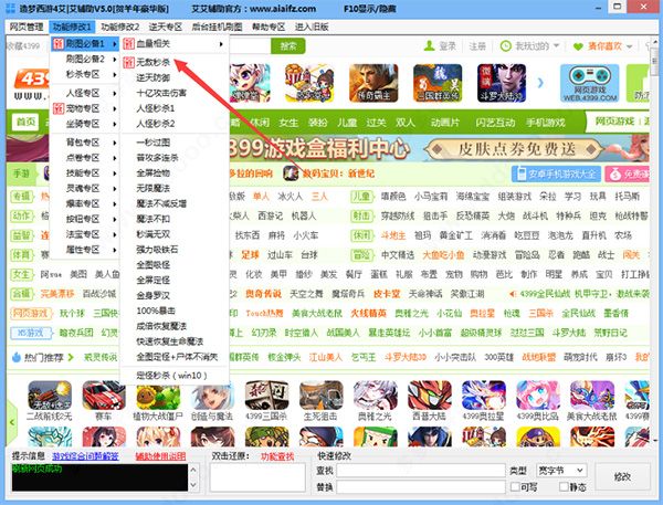 造梦西游4艾艾修改器是一款门针对4399旗下造梦西游4页游的辅助工具,通过它玩家可以轻松在页游中实现破格回血、快速回血、无敌秒杀、宠物破格回血、进图死亡、月饼不减少、守卫昆仑山错乱、放入合成不减道具、放入合成成倍增加道具等工具,让玩家可以轻轻松松的进行游戏,秒杀怪让你轻松战斗,并且不必在游戏中重复刷怪捡道具,只要有一个道具即可无限次使用,节省下玩家的时间和精力,有需要的用户欢迎下载体验。