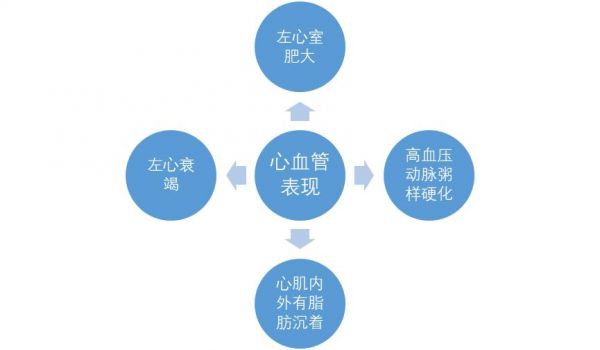重度肥胖者可能由于脂肪组织中血管增多,有效循环血容量、心搏出量、输出量及心脏负担均增高,有时伴有高血压、动脉粥样硬化,进一步加重心脏负担,引起左心室肥大,同时心肌内外有脂肪沉着,更易引起心肌劳损,以致左心扩大与左心衰竭。