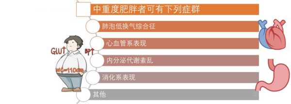 轻度肥胖者常无症状,中重度肥胖者可有下列症群: