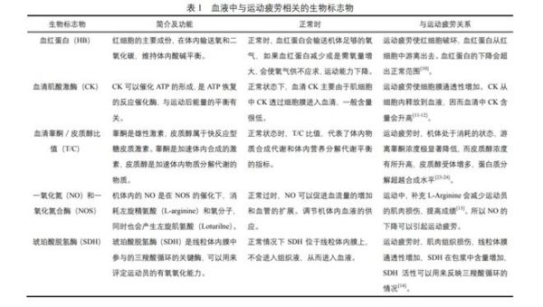 运动疲劳可以由中枢神经系统异常即中枢疲劳,或者是外周神经系统失调等引起。运动疲劳是由于运动引起的整个机体工作能力下降的现象,主要表现为中枢神经系统的疲劳、免疫功能下降、神经内分泌功能抑制、造血系统功能受到抑制、机体抗过氧化下降等。标志物是指可以标记从系统到细胞结构或者功能的改变的生化指标。
