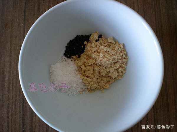 吃的时候加2勺炒面,1勺芝麻,1勺糖,当然这个量不是固定的了,按照自己的需求添加食材即可。