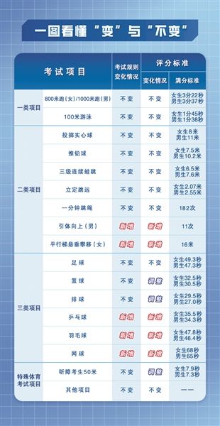 第二项变化是排球和篮球考试规则不变,满分标准在原标准上各增加4秒。