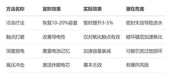 表:常见电池"修复"方法效果对比