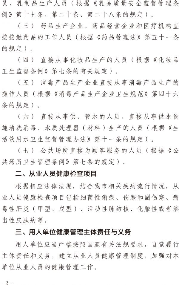 从业人员健康检查相关告知