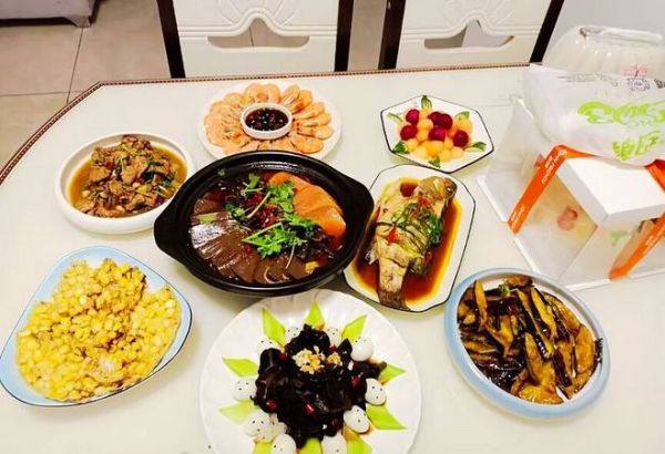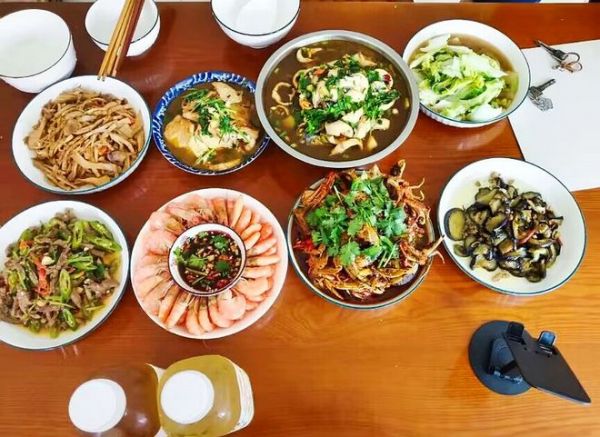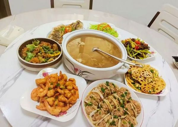 真是会享受生活的家庭,炒虾,茄夹,炒藕片,蒜薹炒肉,清蒸鱼等等,荤素搭配,关键是那中间一大盆炖肉,汤汤水水的吃着滋补又暖和,在这个冬天里,给家人一个暖暖和和的晚餐了!