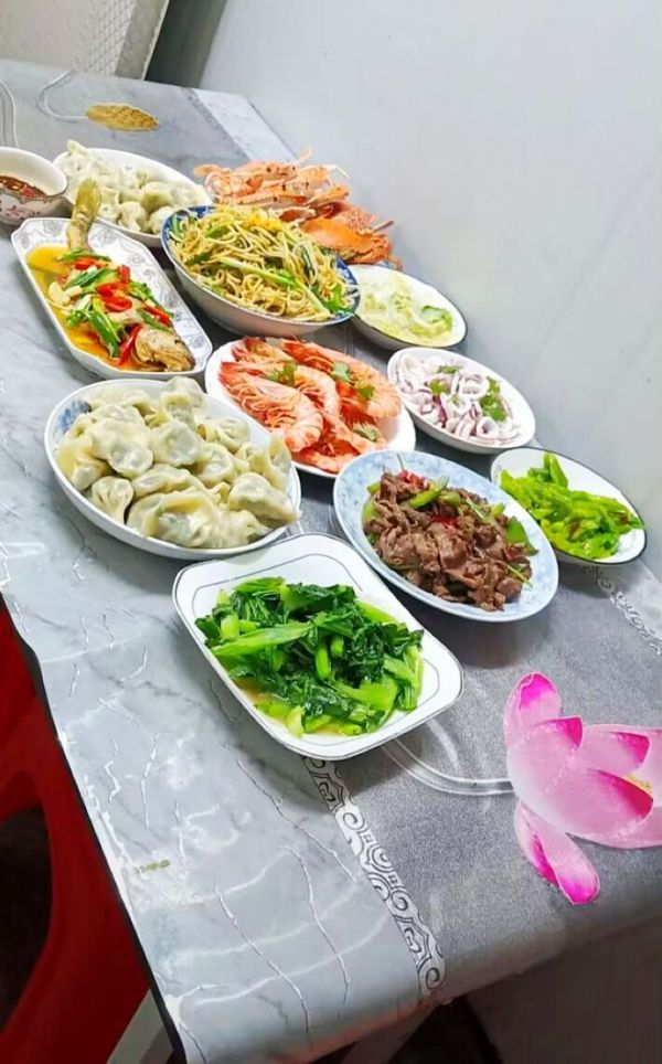 这是南方人在北方吃吗?有南方的海鲜螃蟹+斑节虾+清蒸鱼,还有北方的饺子和炒面。这家到底是南方人还是北方人?有这样吃的晚餐吗?尤其是大雪后吃的,这是在暖气房吃的吗?
