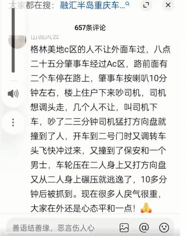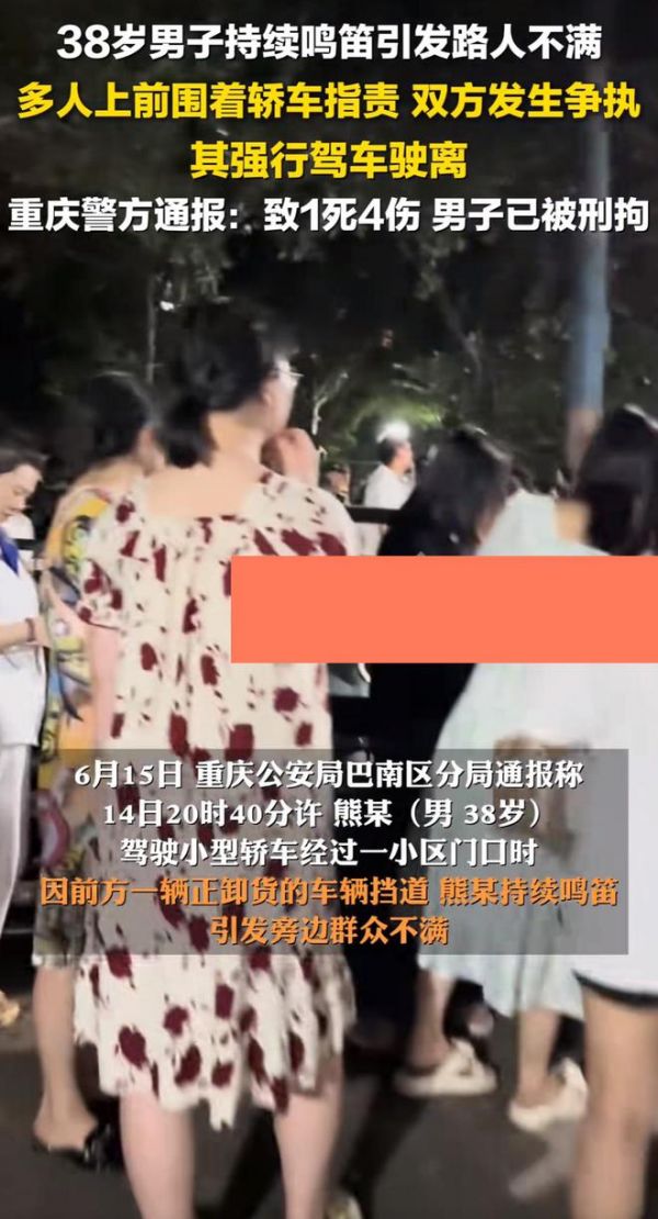 重庆一小区门口男子10分钟鸣笛引发的1死4伤! 更多细节曝光