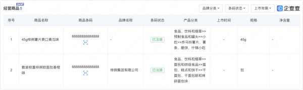 序号 计划编号 计划名称 任务编号 任务名称 抽查类型 抽查机关 完成日期 内容 1 34082520211052 安庆市太湖县市场监督管理局专项执法抽查定向抽取计划2021100911273725 340825202110091004 安庆市太湖县市场监督管理局专项执法抽查定向抽取计划2021100911273725 定向 安庆市太湖县市场监督管理局 2021-10-10 详情 序号 食品名称 抽检次数 被抽检企业 标称生产企业 标称生产企业地址 规格型号 生产日期/批号 抽检结果数据来源:国家企业信用信息公示系统、巨潮资讯网、全国公共资源交易平台、中华人民共和国工业和信息化部网站、中国海关企业进出口信用信息公示平台等。