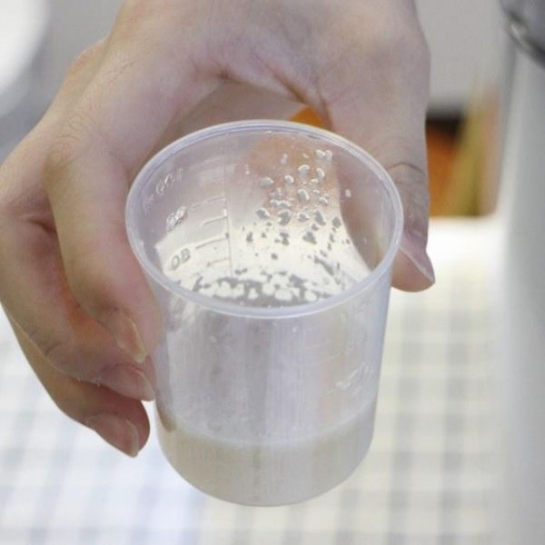 第2步、当量杯中产生明显的乳白色泡沫时,证明激活完成。