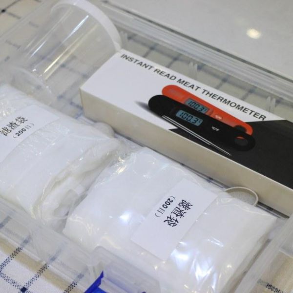 第1步、激活酵母:在量杯中倒入30ml约38℃的温水,加入3g糖直至融化,加入0.8g果酒酵母,静置15-20分钟。