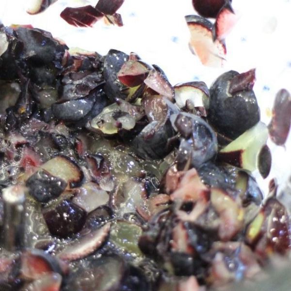 第4步、用搅拌机或榨汁机将葡萄打至破皮出汁(也可以用手挤压),倒入领致果酒机的酿造锅内,加入激活好的酵母。