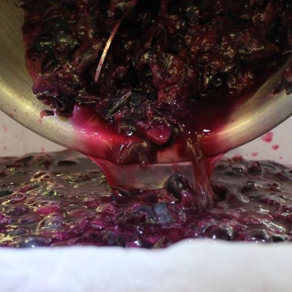 第7步、滤渣袋收口后慢慢提起,式酒液与果渣分离。