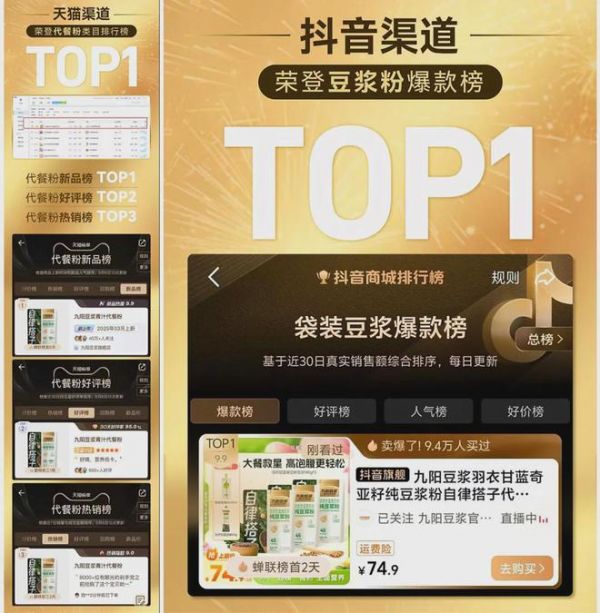 该产品一经上市便迅速走红,上市首月全国销量就突破了50万袋,目前已经突破100万袋,销售纪录还在持续刷新中,还一跃登上了天猫的代餐粉新品榜TOP1和抖音渠道的豆浆粉爆款榜等多个TOP1。
