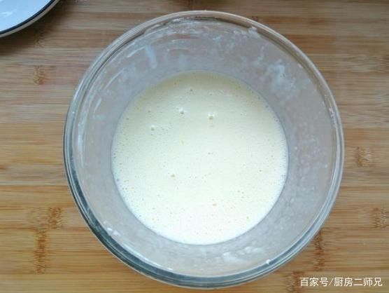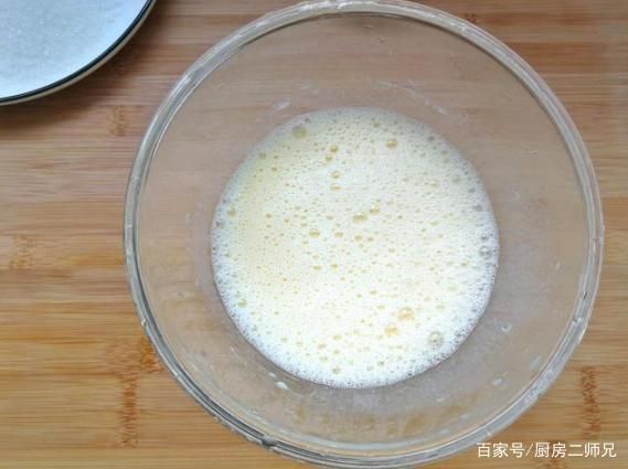 2、 取一个大碗,把鸡蛋打到碗中,把100克牛奶倒入碗中。这样会让蜜豆年糕有一些奶香味,如果家中没有牛奶的话,换成清水就行了。但是可能就没有奶香味了。