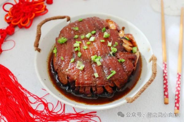 梅菜扣肉是一道传统的过年菜,寓意着蒸蒸日上、红红火火、没病没灾、平安顺遂12。因其外形圆满,被人们称为“红袍添喜庆”。