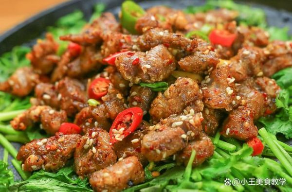 孜然羊肉:羊肉 200 克,洋葱、孜然粉、辣椒粉等适量。羊肉切片腌制,洋葱切块。锅中热油,放入羊肉煸炒至变色,加入洋葱继续翻炒,最后加入孜然粉和辣椒粉调味。