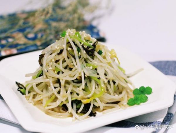 凉拌豆芽:豆芽 200 克,胡萝卜丝、醋、生抽、香油等适量。豆芽焯水,胡萝卜切丝。加入醋、生抽、香油等调料拌匀,清爽可口。