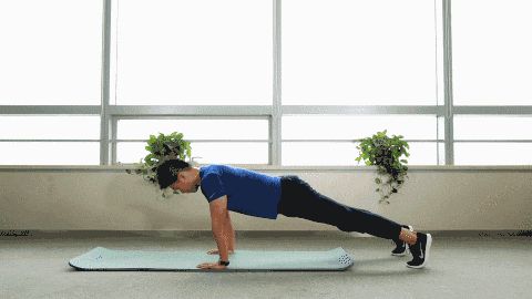 俯身于地面,双臂放于肩部下方起支撑作用,手臂微微弯曲,双腿保持直立,双脚尖接触地面起支撑作用。背部保持直挺,从头到背部,腿部呈一条直线,弯曲手臂向下俯身直到胸部快要接触地面的时候伸直手臂还原,进行10次左右。