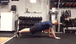 你的身体现在已经是平行于地面,增加地心引力。滑动时尽可能骨盆不要前倾,下背部陷入过度伸展。