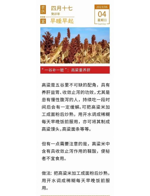 高粱养肝护肝是“能手”