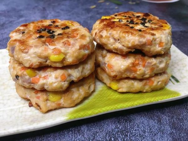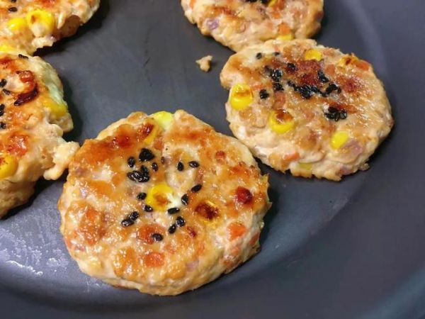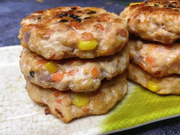 出锅忍不住吃了一个,口感Q弹有嚼劲,不腥不柴,满满的肉香味,每一口都是满足,还合理搭配了3种蔬菜,口感丰富,营养全面,春天是减肥的最佳季节,如果您不知道吃什么,这道鸡胸肉饼就是不错的选择,自己做的干净卫生,健康还省钱,喜欢的就收藏起来试试吧。