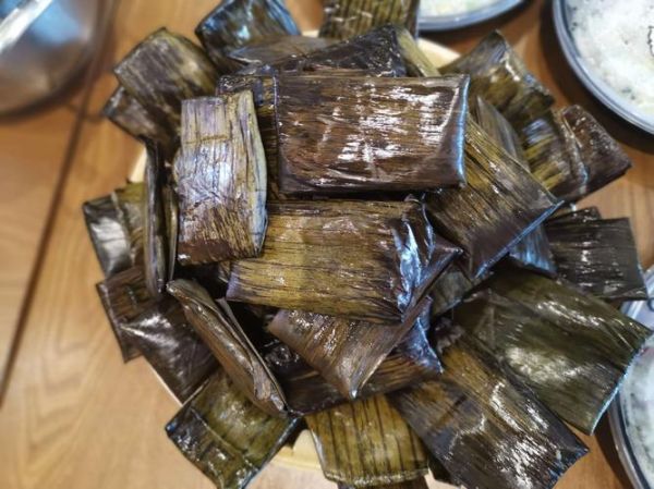 泼水粑粑的原料主要是糯米和新鲜的芭蕉叶。制作时,首先要将糯米磨成细腻的吊浆粉,然后加入适量的红糖揉合成粉团状。接着,将粉团放在新鲜的芭蕉叶上,轻轻压成扁长状,最后放入蒸锅中蒸熟即可。