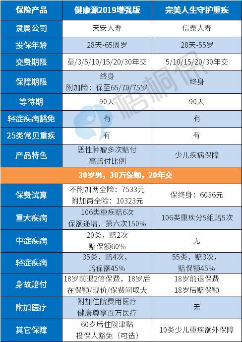 对比:健康源2019增强版和信泰完美人生守护重疾