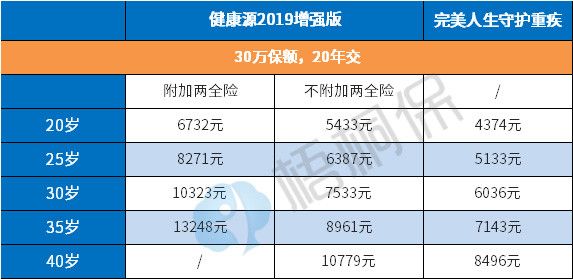 对比两款产品的价格,发现无论健康源2019增强版附加两全险与否,在价格上比起线上重疾险完美人生守护重疾要是要存在不小的劣势的。