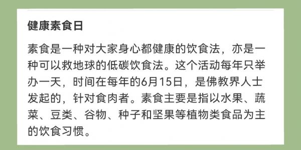 在健康素食日这一天,让我们一起行动起来,选择素食,为健康和环保贡献自己的一份力量!