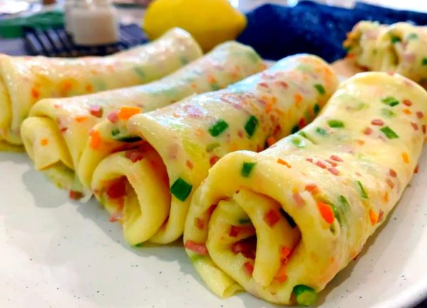 煎制完成的鸡蛋饼,不仅本身便香气四溢,直接食用便已十分美味。然而,若搭配上新鲜的生菜、鲜嫩的鸡腿肉以及特制的酱汁,其口感与营养价值更是能得到进一步提升,让人回味无穷,顿感美味早餐的享受。
