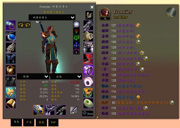 装备选择工程头(如有遗产保卫者可替换T5头),冰雹项链,T4肩膀(T5肩膀更适合仇恨装配装,所以说黑手是团队前进的一大动力),3锻胸,卡拉赞胆量臂甲,T5手腿。因为天赋出了盾牌掌握,所以装备选配以格挡值装备为主,防战4T5属性比较优秀,可以优先出(黑手怨念)。现阶段精准属性收益明显,但装备就戒指,武器,对于战士T用皮甲腰带个人持反对意见,30命中饰品可灵活更换耐力,防等,按需配置即可。