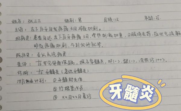 患者就诊的主要原因。用患者的语言,简明扼要地记录。要写清楚患病部位、症状和发病时间,例如“左上后牙遇冷热痛一周”。