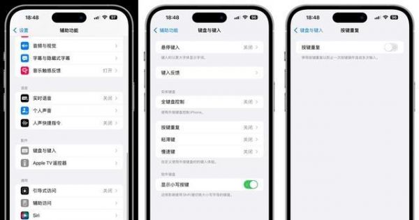 关闭“按键重复”: 【设置】>【辅助功能】>【键盘】> 关闭“按键重复”。